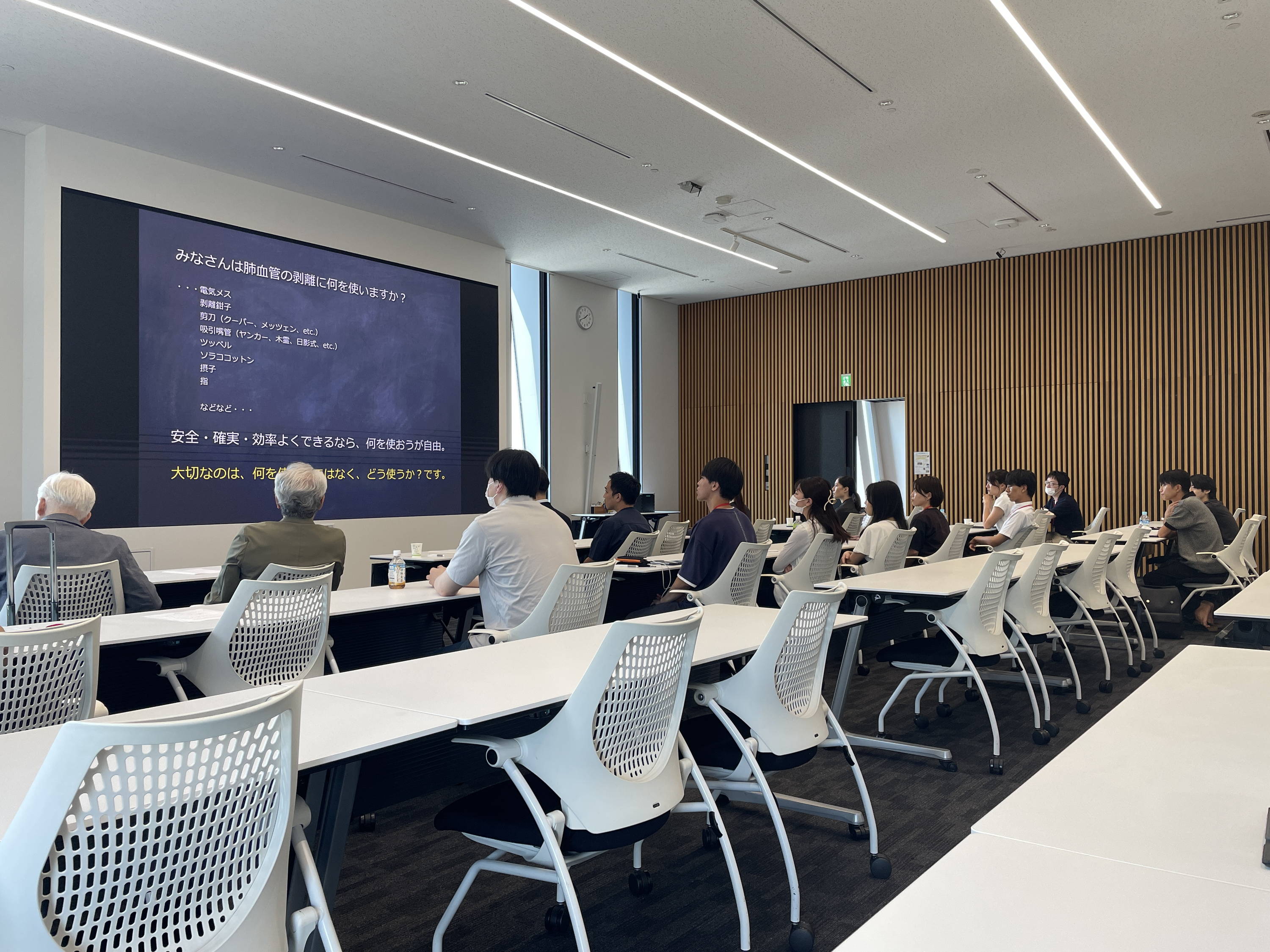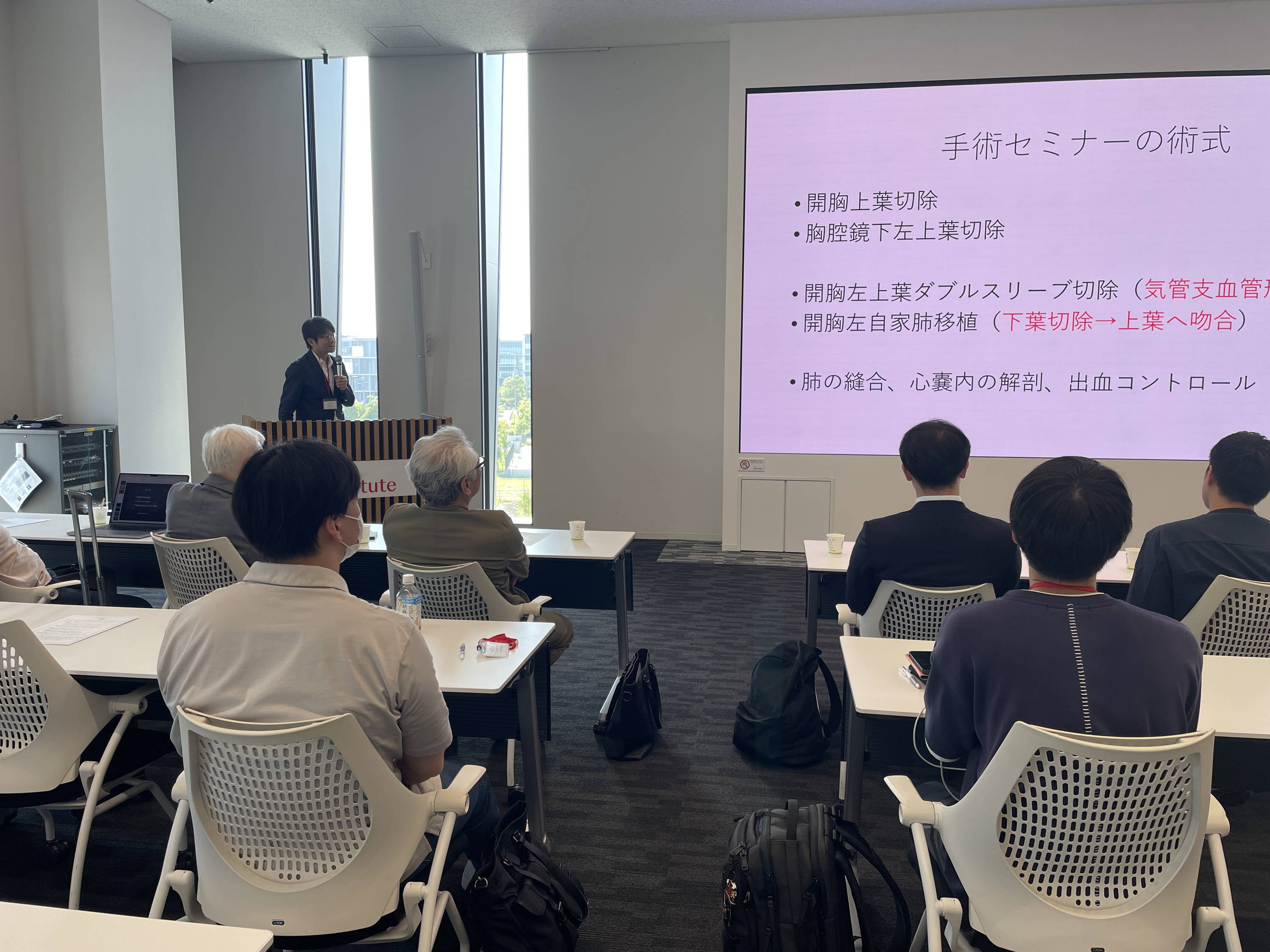 2026年8月22日(土)、33日(日)にJ&J Institute 東京サイエンスセンター(川崎)にて第15回目となる手術セミナーを開催致します。例年多くの若手の先生方に参加いただき、活気あるセミナーとなっており、胸腔鏡手術や気管支血管形成に至るまで希望に沿ったトレーニングを行います。京都大学呼吸器外科の芳川、田中の他、聖路加国際病院の小島史嗣先、神戸市立医療センター中央市民病院の本山秀樹先生、倉敷中央病院の豊洋次郎先生が講師として参加予定です。